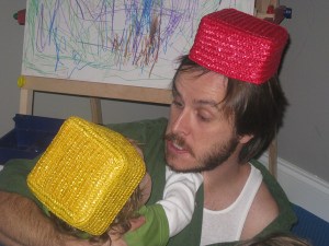 We met Elliot’s lovely home teacher — J — last week. Elli did that thing, you know the one, where your kid makes you look silly and over-reactive. Not just me, right? In fact, he ran around the room saying “Look!” and “Ball!” of course, but also “Hat! Woof woof! Uh oh! Ock! (sock) Uck! (stuck)” So, yeah, he suddenly says many more words than he did during his evaluation. That makes me happy. It also makes me look a little like a developmental Munchausen case. He will also point to eight different body parts (eight more than he did a month ago) and accurately identify various family members when asked. Also new. Best of all, when I say, “Where are your curls, Elliot?” he will run his fingers through his hair.