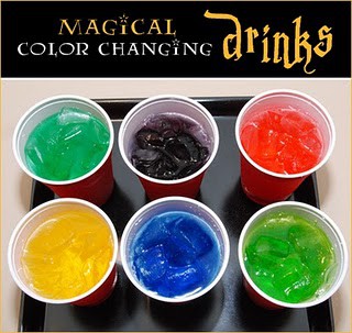 The fake Harry Potter font makes me cringe, but it’s a cheap and easy magic trick.Β Β Adults should feel free to use vodka. And go first. Because I know those kids are going to fight over the colors until I am threatening to end the party right then and send the pony home. (There’s not really going to be a pony.)